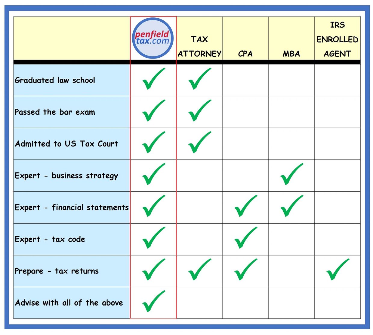 Beware of those national tax preparation chains. You know the ones - the seasonal tax preparers who have limited qualifications and experience - but give themselves fancy titles. Few, if any, are licensed CPAs and certainly none are both CPAs and attorneys (like yours truly)!
