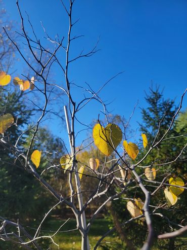 DANCING AT THE PERFECT TIME. The tree showers a stunning rainbow of hues against the backdrop of lush green grass and evergreen trees from spring to late fall. It's perfect because this tree dances 💃 when tax season ends until about year-end when we begin to get busy again. I will remember the extra family time dad devoted when this tree does the flamenco!